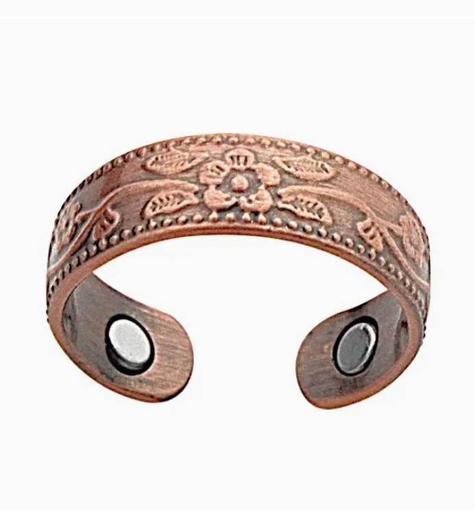 koperen magneetring met bloemenontwerp
